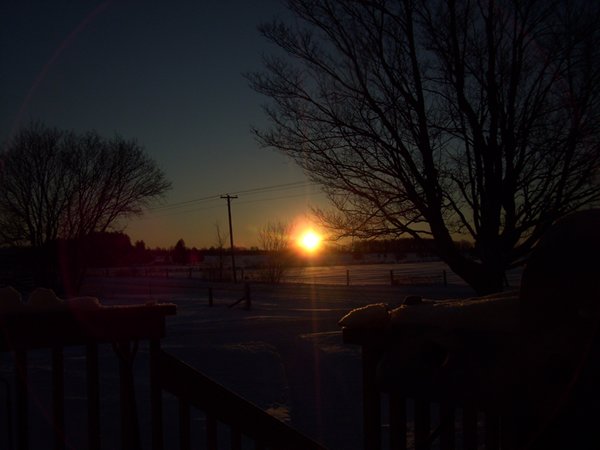 The actual view from my front porch was breathtaking to say the least. Despite the -25 C reading this sun had that comforting touch to it that reached down deep in my soul made me take a deep breath and smile. Warmth from within.